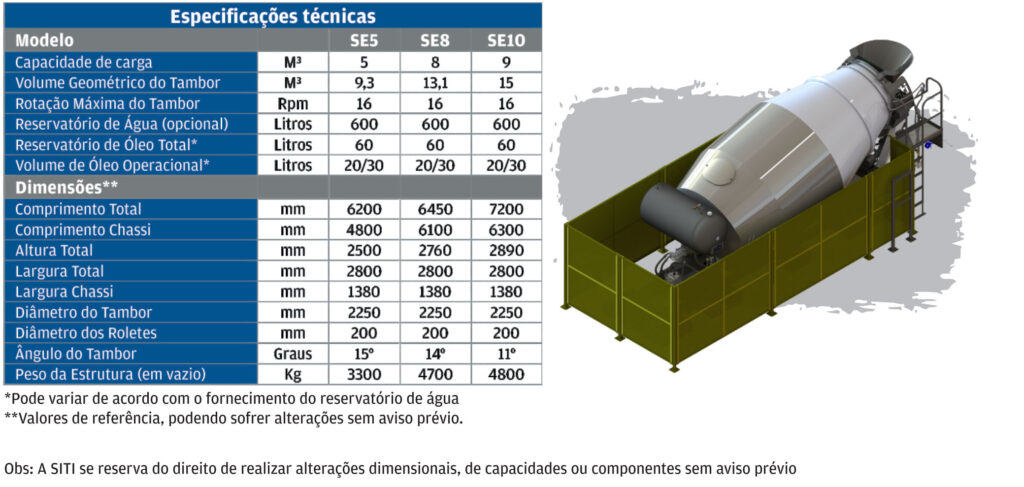 As Betoneiras Estacionarias da SITI podem ser usadas nos segmentos de produtos, homogeneização e limpeza em recuperação de vidros e na indústria de fertilizantes. Nesse caso, o produto e utilizado como misturador de matéria-prima. Diferentemente dos equipamentos convencionais para caminhão, as Betoneiras SITI funcionam através de energia elétrica.
